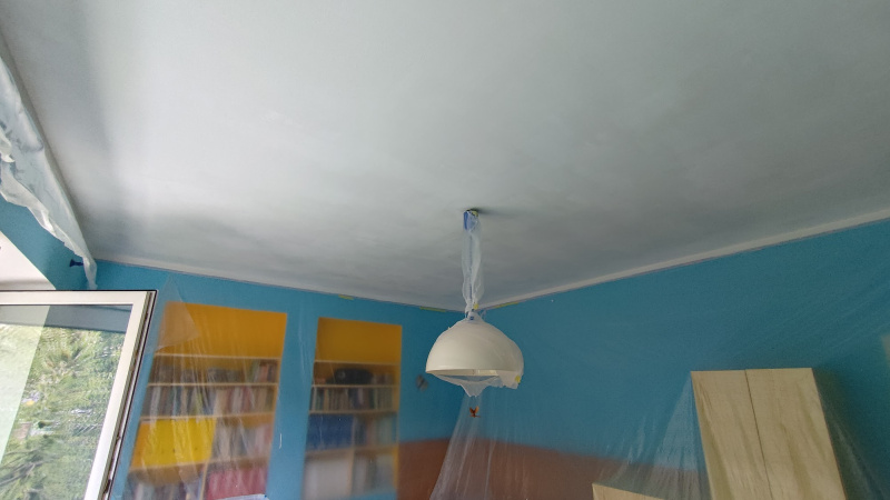 Ein Einfamilienhaus in Koeln wurde teilweise renoviert. Nach der Wärmedämmung der Außenwände und der Absenkung der Decken begann sich zunächst an den Decken und dann auch an den Wänden Schimmel zu bilden. Das ist ein typisches Beispiel für unseren Alltag – nach der Wärmedämmung eines älteren Hauses hört das Haus sozusagen auf zu „atmen” und es bildet sich Schimmel an den Wänden. Im Kinderzimmer haben wir die Isolierbeschichtung nur auf die Decke und die Fensterlaibung aufgetragen, das Wohnzimmer haben wir komplett isoliert. Die Kundin wünschte sich, die Wände wieder orange zu streichen, was für uns natürlich kein Problem ist. Die Anwendung dauerte zwei Tage, dann folgte die Endreinigung, der Stempel auf dem Zertifikat und fertig!